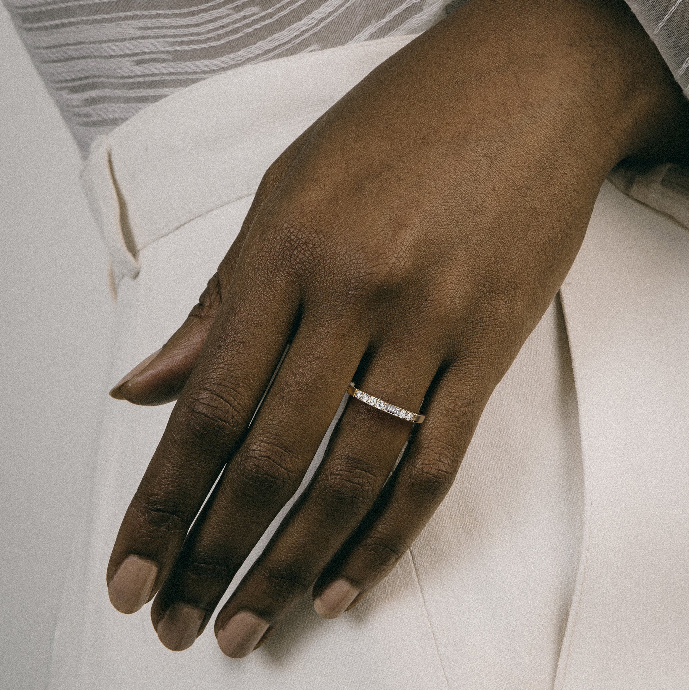 We offer complimentary engravings for all of our bands. Reach out to us at hello@shwjewelry.com to receive a list of available fonts.
