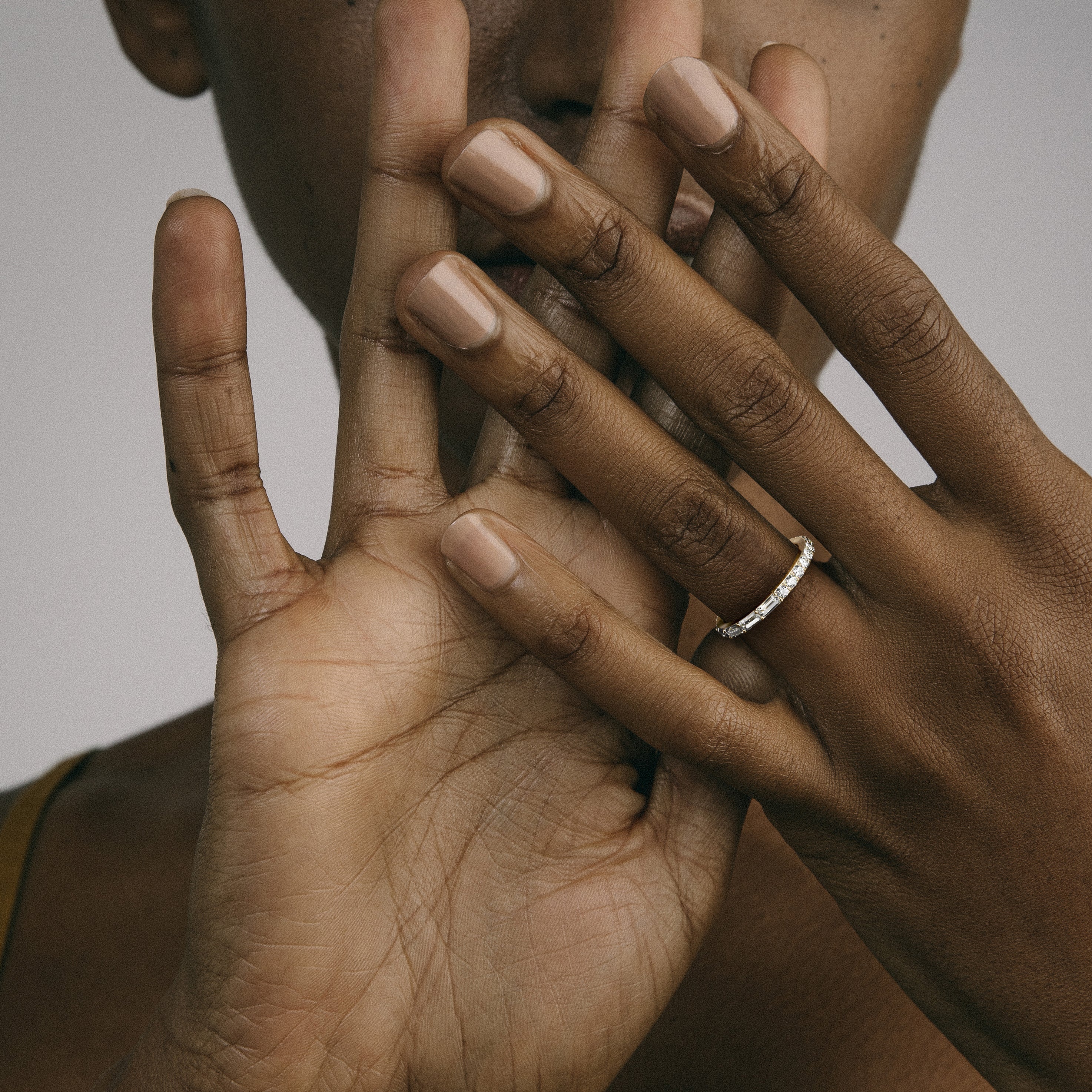 We offer complimentary engravings for all of our bands. Reach out to us at hello@shwjewelry.com to receive a list of available fonts.
