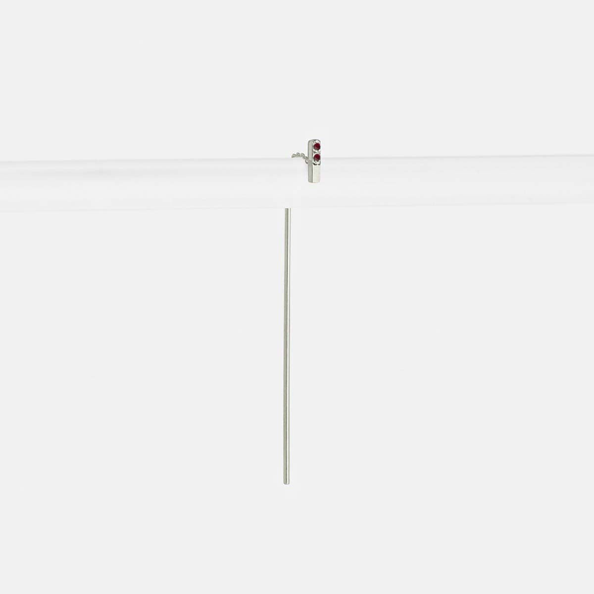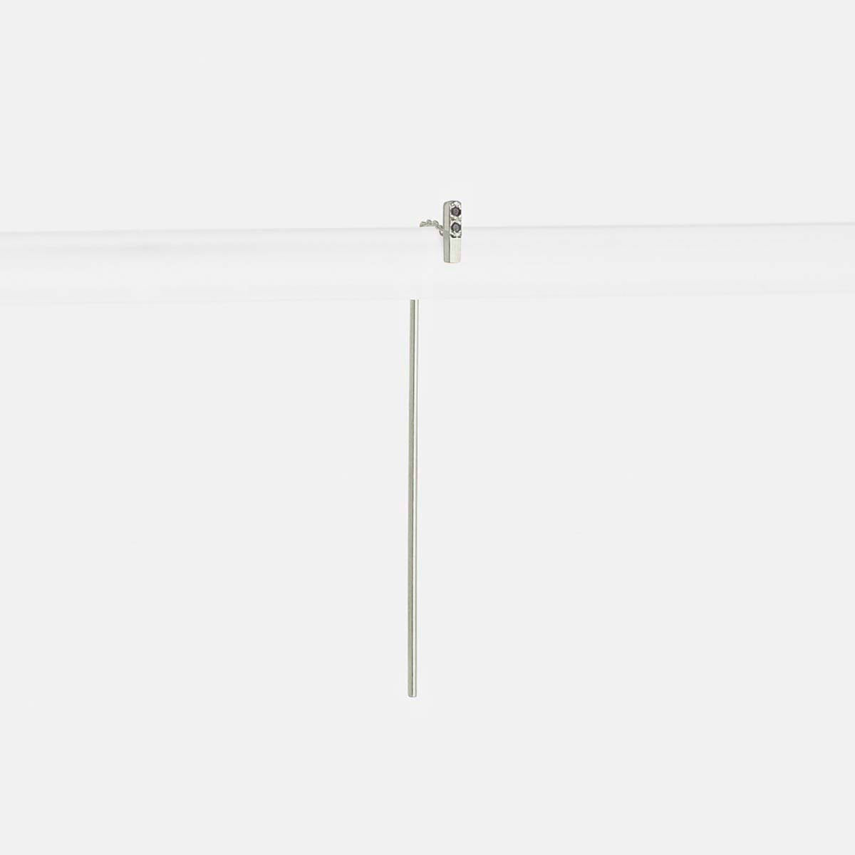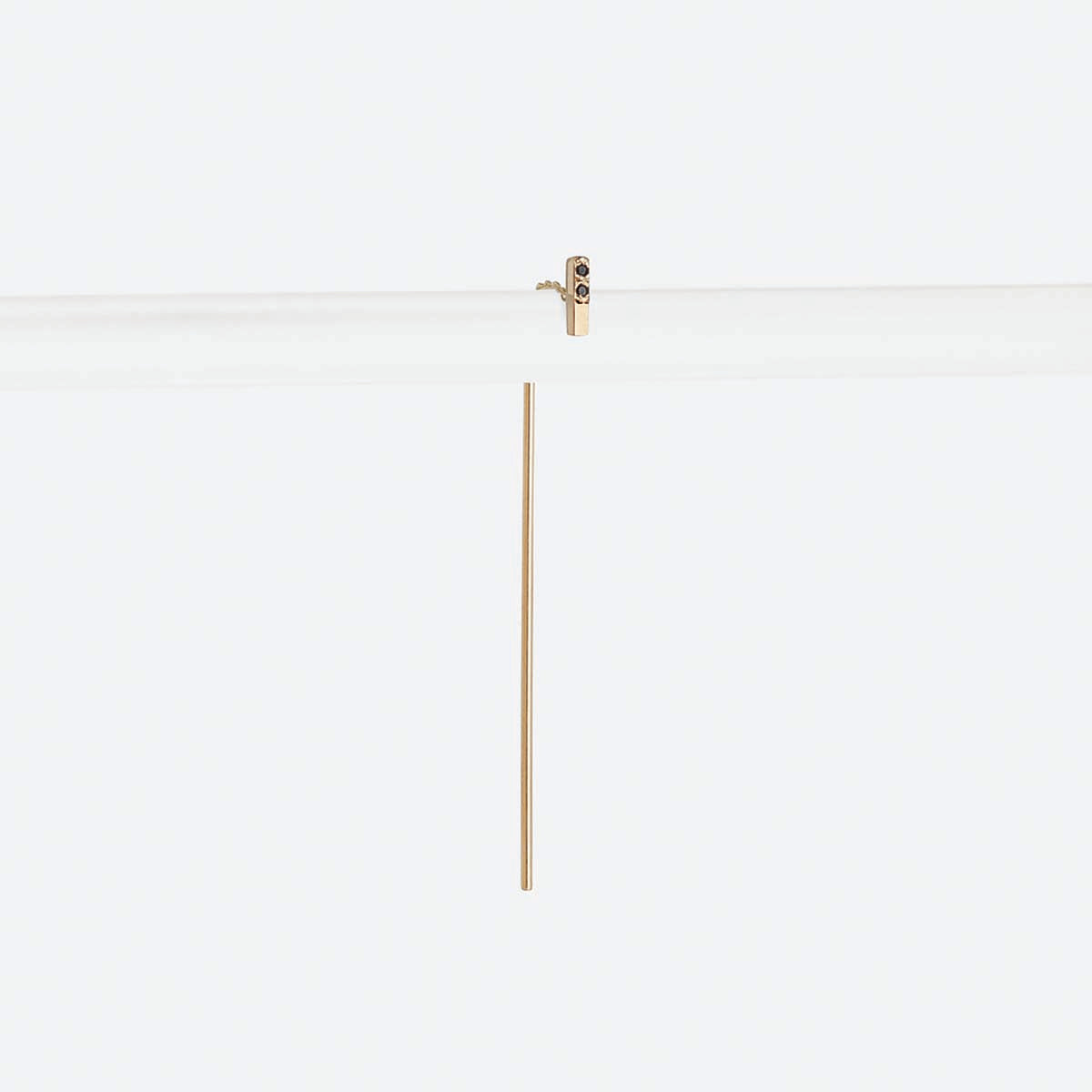 The rectangle in this pull-through earring acts as a stud while the bar dangles from behind your earlobe and sways back and forth on a delicate hidden chain. The weight of the bar keeps this earring in place (there’s no need for an earring back), and the chain fits comfortably in your ear.