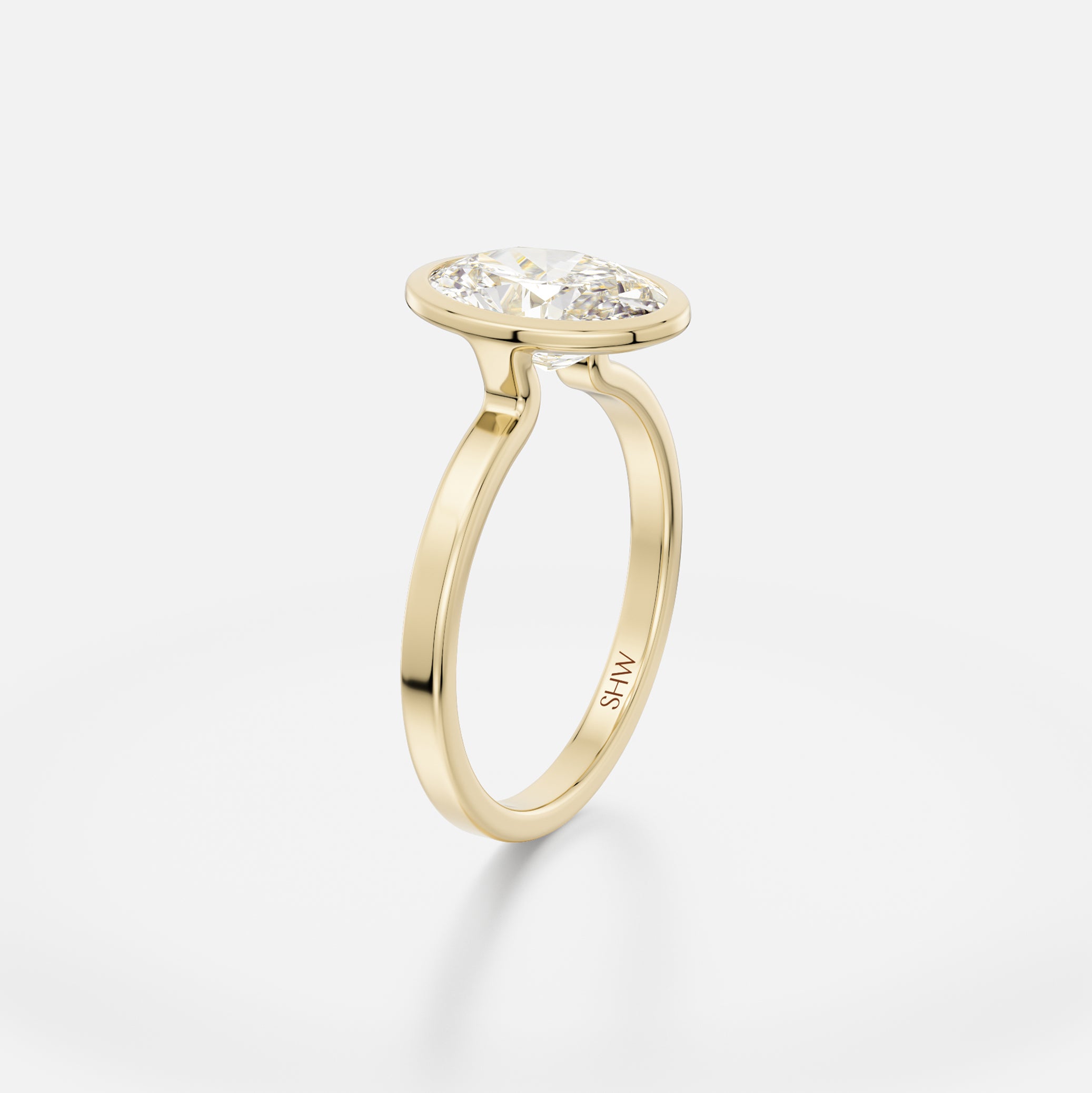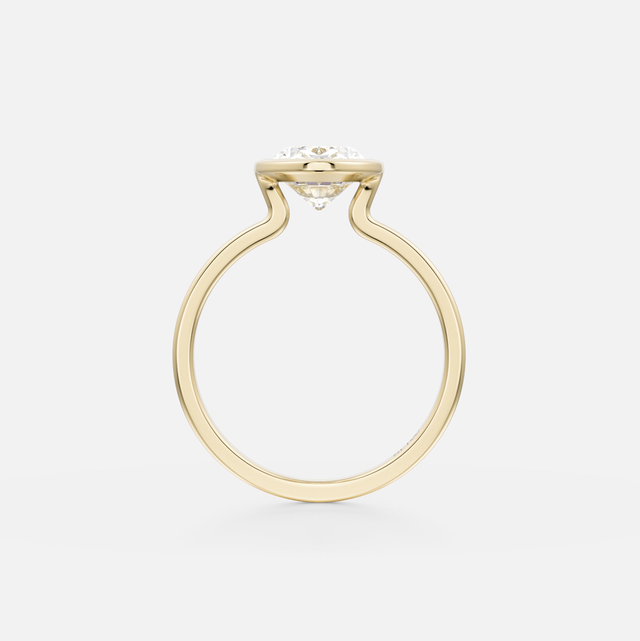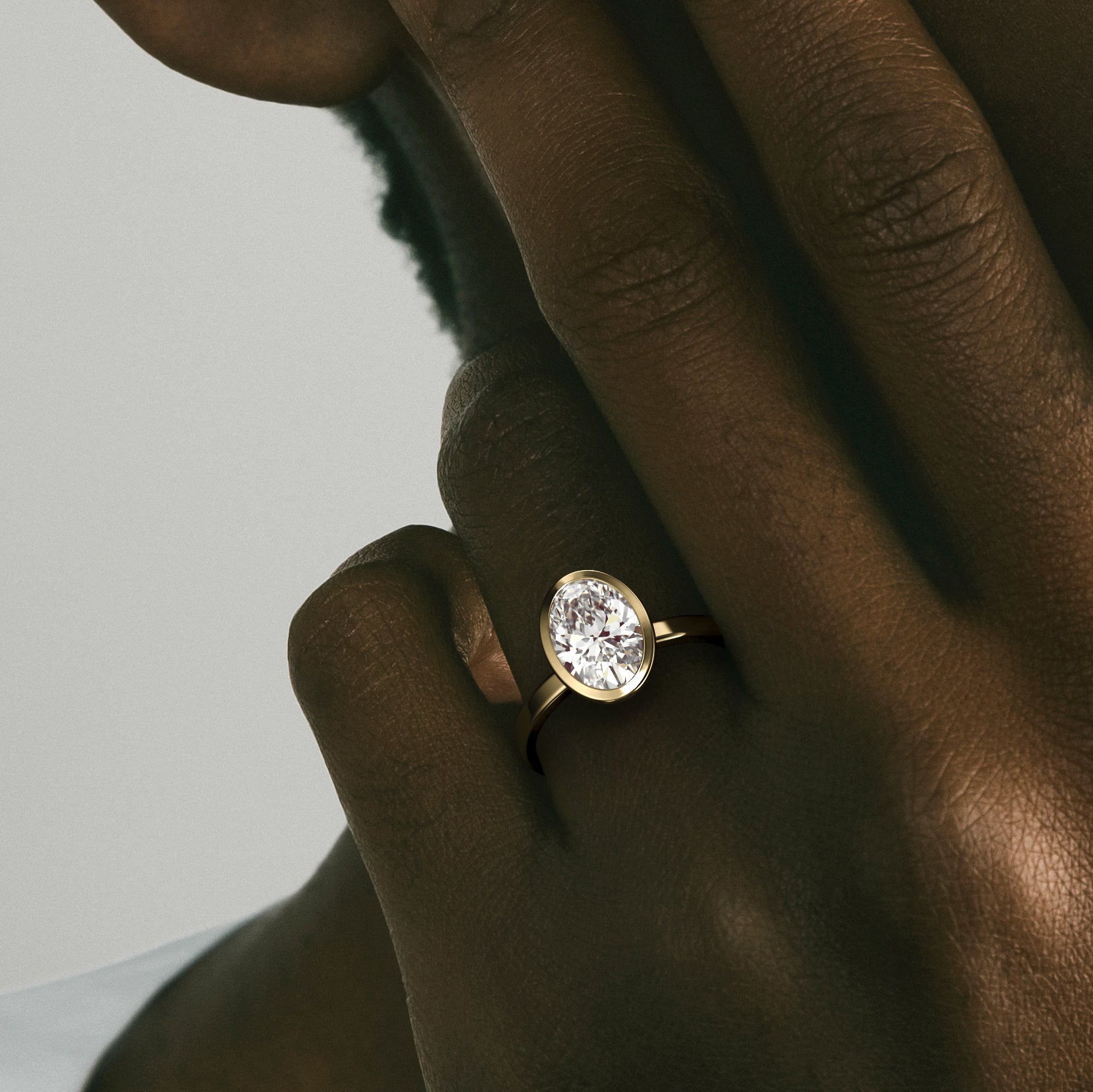 Our Mana Ring features a modern bezel setting which allows for a unique perspective of the bottom of any diamond or gemstone to be shown. The setting is formed by the rings band extending into a bezel that surrounds the top of the stone.